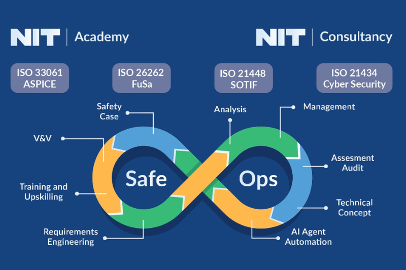 To address this, NIT performs gap analyses - high-level assessments that help companies understand where they stand against automotive safety and quality standards, and what it takes to close those gaps. The outcome is always actionable, whether it’s a roadmap for standard compliance, a new CI/CD setup, or a company-wide upskilling plan.
